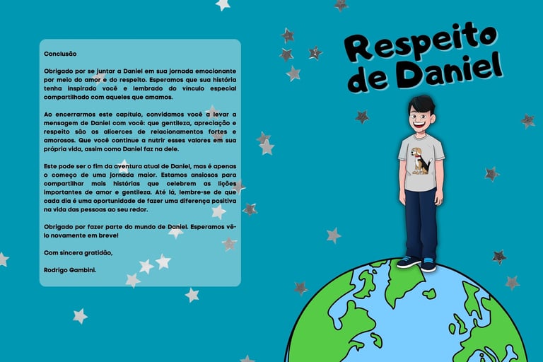 Em uma pequena e encantadora cidade, vive Daniel — um menino conhecido por sua alegria, bondade e, acima de tudo, por seu profundo respeito pelos pais e por todos ao seu redor. Inspirado pelo amor que recebe em casa, Daniel decide compartilhar esse valor com seus amigos, sua escola e, sem perceber, com o mundo inteiro.